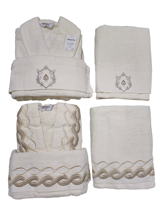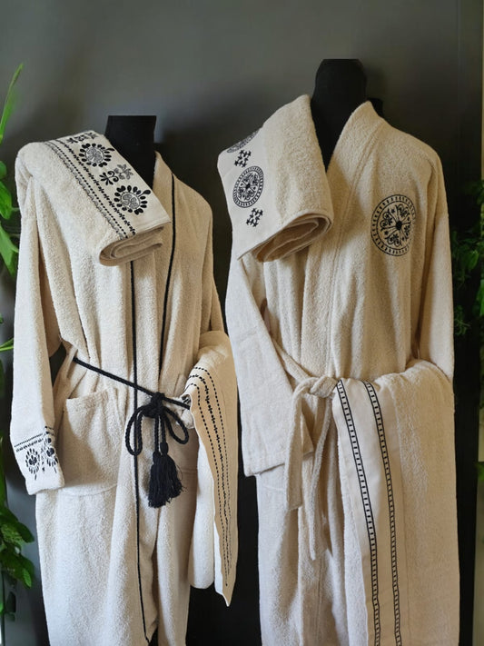 Indulge in luxury with our 6 Piece Couples Bathrobe Sets from My Home Exclusive. Made with soft, 100% Turkish cotton, these sets are perfect for two. Feel like royalty and elevate your bath time ritual with this exclusive set. A perfect gift for any occasion.
