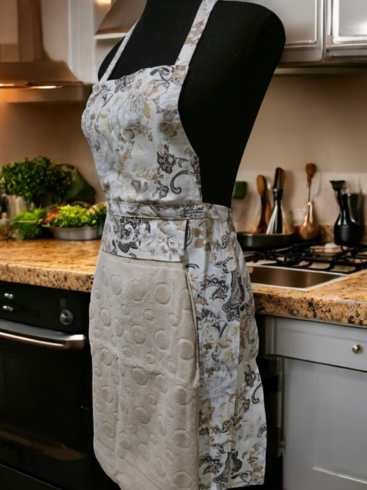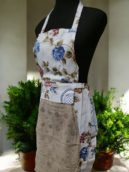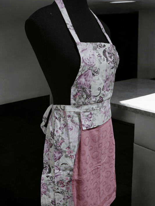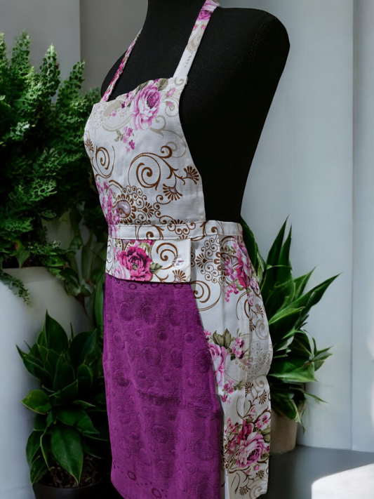 Purple Floral Apron | 1 Detachable Cotton Towel | Stylish Kitchen Wear
