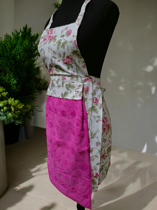 Magenta Floral Apron | 1 Detachable Cotton Towel | Stylish Kitchen Wear