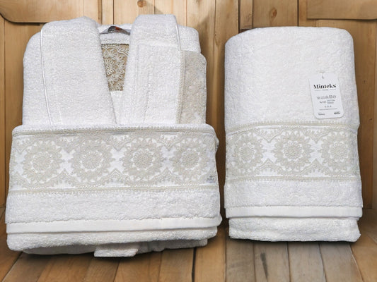 Samira Luxury 100% Turkish Cotton 3-Piece Bathrobe Set - Soft, Absorbent Robe & Towels